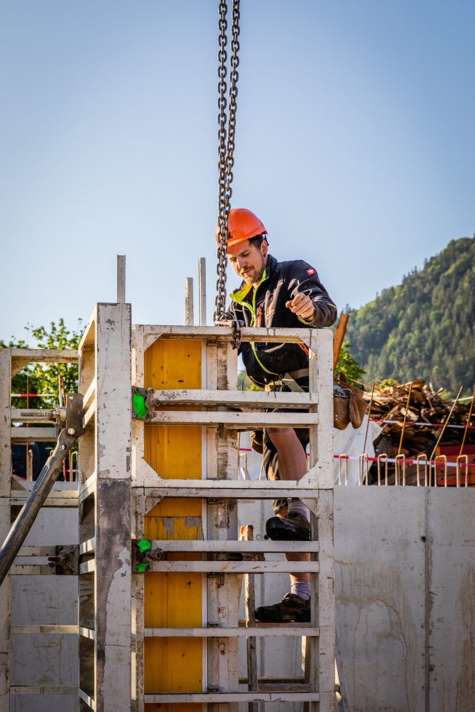 Stahlbeton ist der am meisten verbaute Baustoff der Welt. Wir bauen damit Häuser, Brücken, Klärbecken und vieles mehr. Als Stahlbetonbauer, der auch als Schalungszimmerer bekannt ist, arbeitest du in einem Team an der frischen Luft. Deine Hauptaufgabe besteht darin, Schalungen aufzustellen, die dem Beton die Form geben.